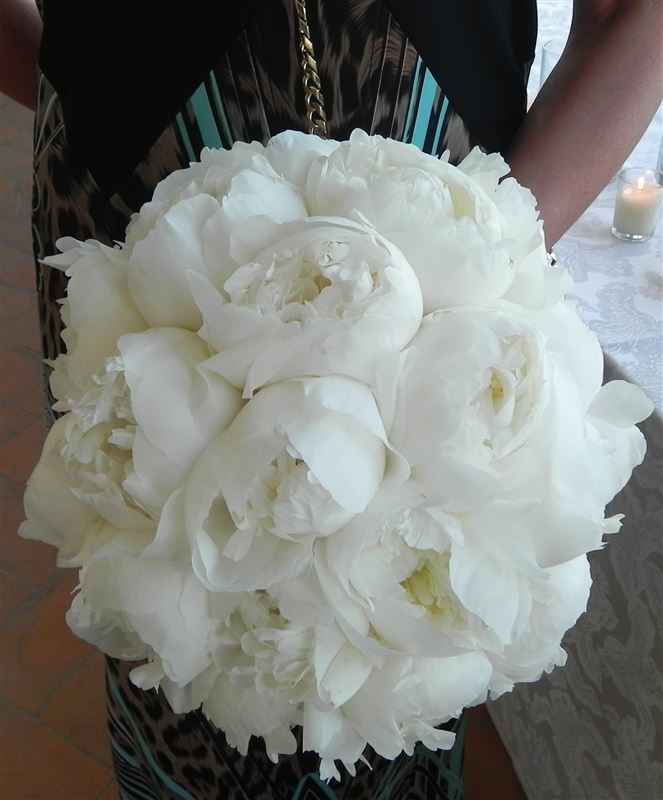 Elegante bouquet di peonie bianche senza verde confezionato con tulle bianco